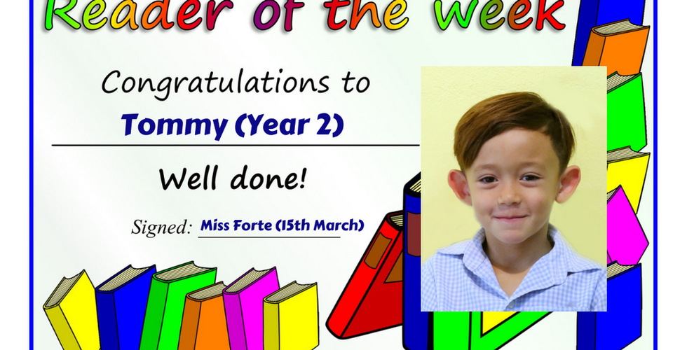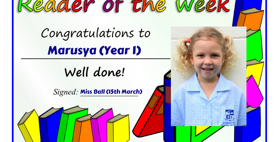 15th March 2019: Readers of the WeekMar 15, 20191 min read Congratulations Lili, Marusya, Tommy, Saskia, Sonic, Petr and Lou! Keep reading...Click here to see the historical list of Readers of the Week in Primary School